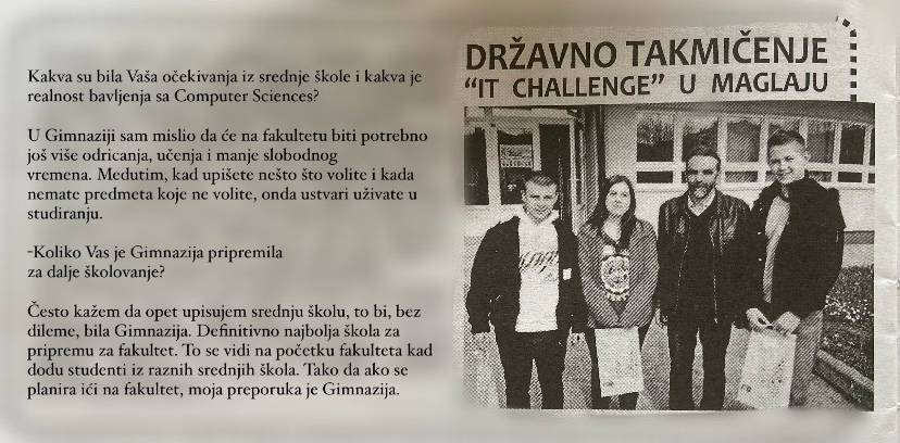 Ponosni smo na njega, kao i na sve naše gimnazijalce. Dijelimo sa vama njegov karijerni put.