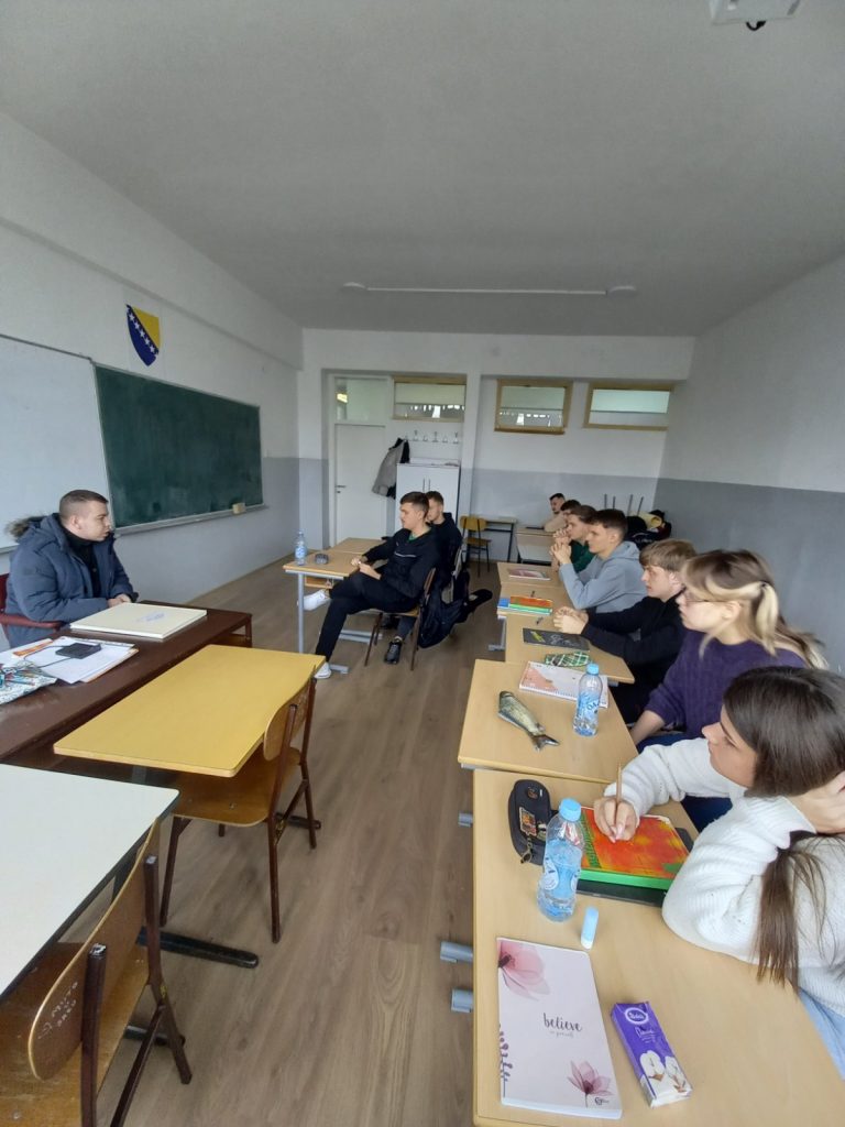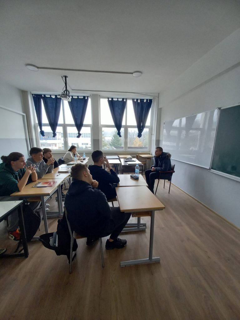 Učenicima je predstavio svoje iskustvo izbora fakulteta, izazove i mogućnosti koje studij donosi te podijelio savjete o planiranju budućnosti, razvoju digitalnih vještina i pronalaženju vlastitog profesionalnog puta.